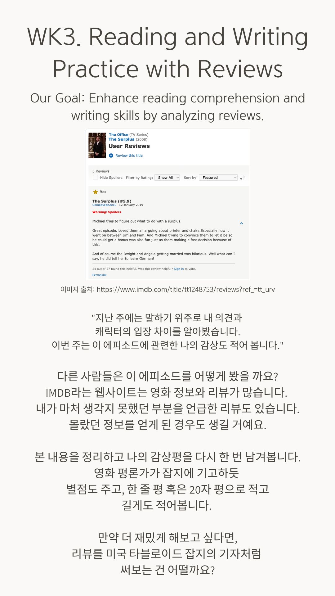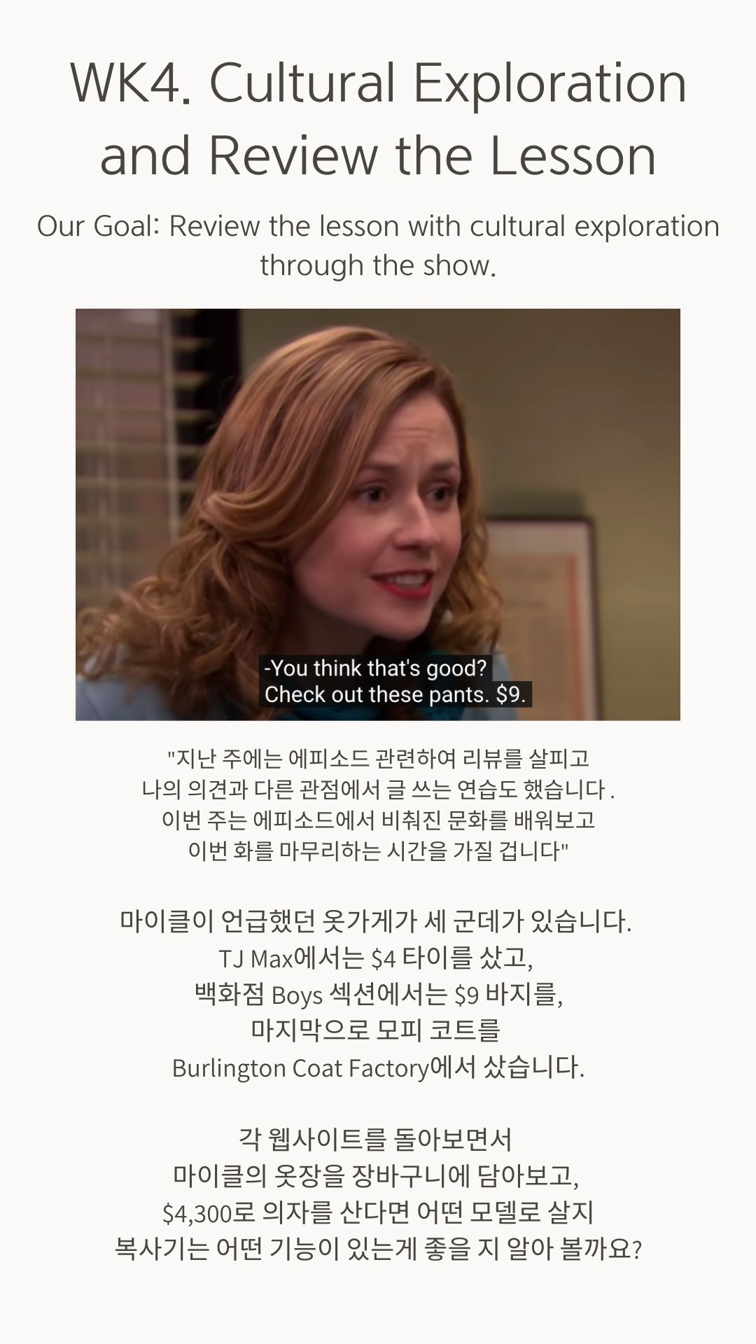 제가 좋아하는 미드 The Office로 만든 4주 수업 가이드입니다 :)